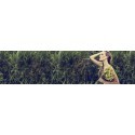 Sleeveless knee-length chiffon dress. V-neckline with elastic under the bust lining.